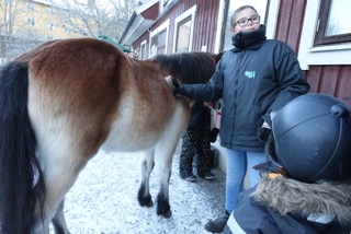 Denna mellandag på jullovet är de båda miniledarna Ebba Gundersen, 12, och Nora Mansour, 11, på plats på gården. De har många uppgifter. Till exempel sadlar de om hästarna för sina turer och de hjälper de mindre barnen att mata kaninerna. Båda har gått en kanin- och hästutbildning för att bli miniledare och de är ofta på gården – både efter skolan och under loven.