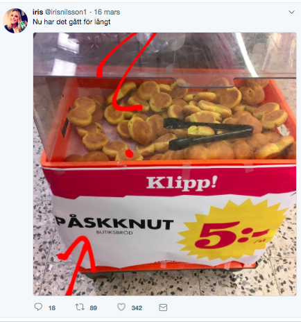 fruängen Publicerad 15:39, 28 mars 2018På Hemköp i Fruängen finns det lussekatter att köpa lagom till – påsk. Men egentligen är det inte lussebullar utan här kallas de ”påskknutar”. Och de säljer bra.