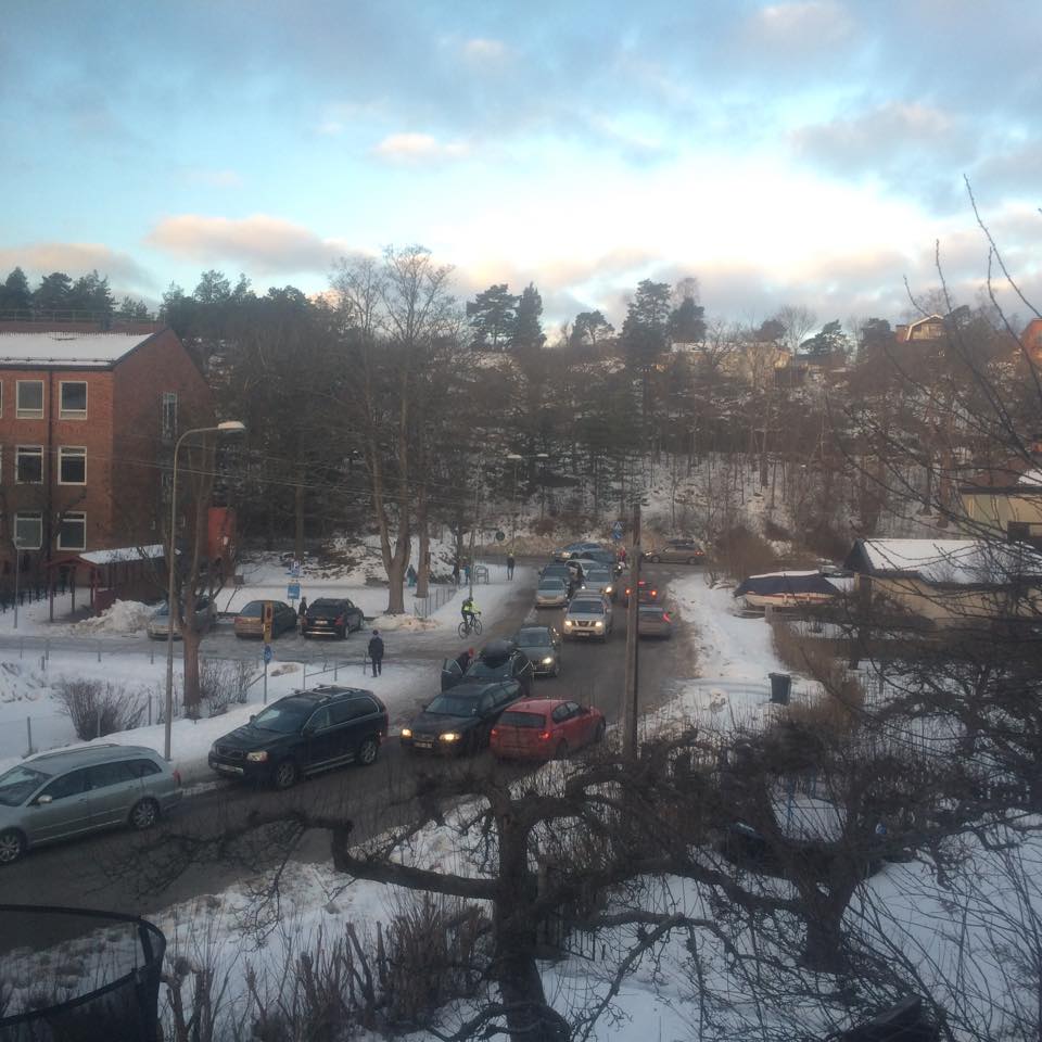 mälarhöjden Publicerad 10:49, 16 februari 2015Så här såg det ut på Lugntorpsvägen framför Mälarhöjdens skola vid åttatiden i morse.