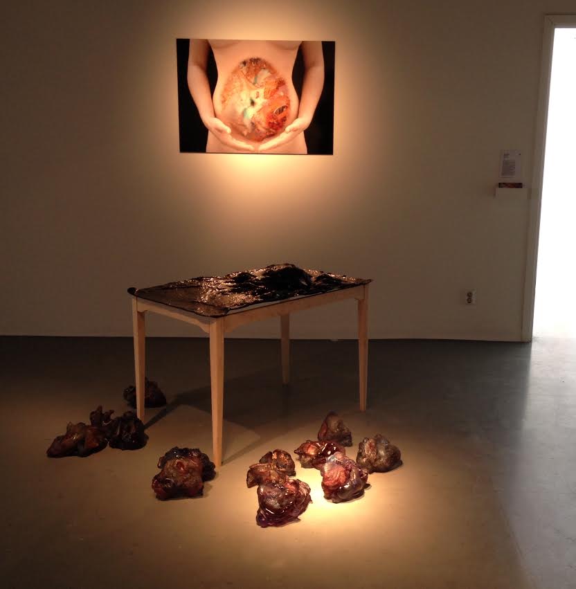 ’Inferilitet & Identitet (och det som sjuder under ytan)’ av Ulrika Barr. Keramik och glas. Ett verk tänkt att gestalta ”vad hen går igenom rent kropp- och själsligt under resan som ofrivilligt barnlös” (citat ur konstnärens introduktion).