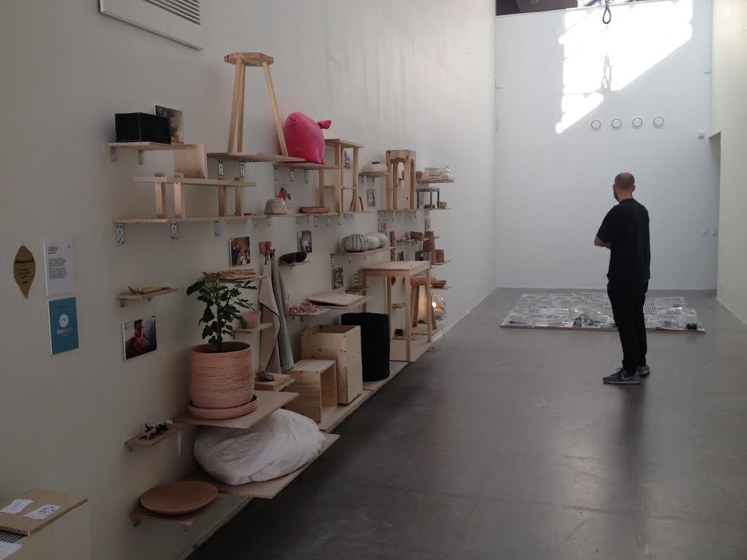 Ett annat konstverk värt att nämna är industridesignern Kristina Schultz ’100 Dagar Av Behov Och Begär’ (bild nedan), ett projekt tänkt att ”väcka frågor relaterade till materiell kultur i hemmiljö” (citat konstnärens introduktion) och som gick ut på att hon tömde sin lägenhet på alla materiella ting för att sedan tillverka primitiva föremål – stolar, skedar, kärl – som var nödvändiga för att klara sig.