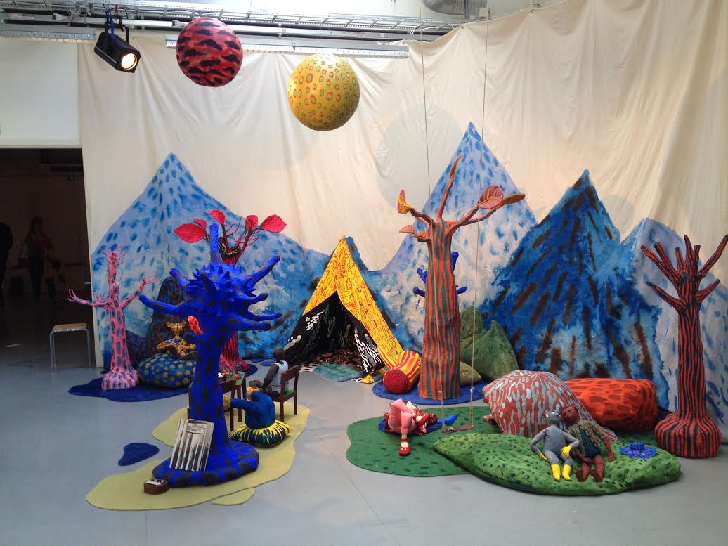 Siri Carléns installation, fantasivärlden ’Gläntan’. Grafisk design och illustration. ”En forskning i alternativa berättarformer med fokus på miljö, karaktär och stämning” (ur konstnärens introduktion).