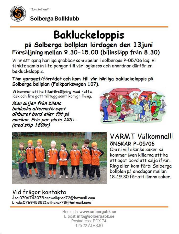 Trångt i garderoben eller i förrådet? Varför inte passa på att rensa och samtidigt tjäna en slant på klenoderna? I så fall kan den bakluckeloppis som SOLBERGA BK P05/06 anordnar vara ett alternativ.