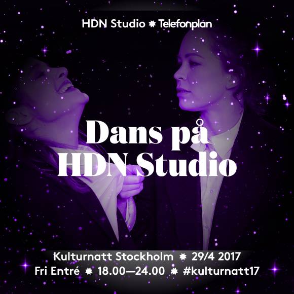 Under Kulturnatt Stockholm visar HDN Studio smakprov ur 2017 års aktuella dansföreställnigar för vuxna, unga och barn. Hälsa på hos apan i en underfundig dansföreställning för barn och familj, lyssna till musik av Louise Hoffsten i dansföreställningen Walk with the Rhytm, se det intensiva dansverket Walking Along samt upplev utomhusdans.