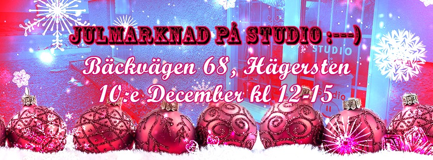 Lördagen den 10:e har vi öppet hus med julmys och julmarknad på STUDIO :–)! Kom för å hänga eller kanske köpa nån julklapp, kommer att finnas lite smått och gott till försäljning! GOD JUL GLAD HELG ETC.!