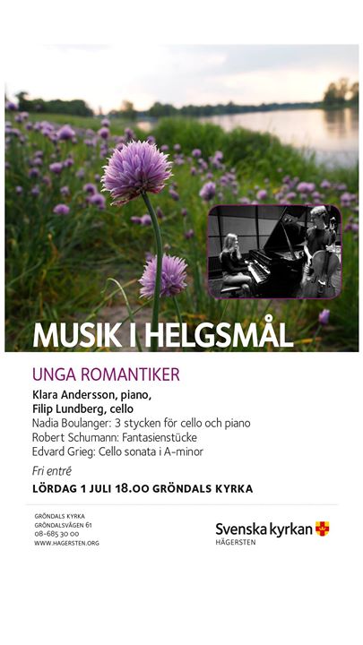 Musik i Gröndals kyrka Gröndalsvägen 61, Stockholm, SEKlara Andersson, piano, Filip Lundberg, cello spelar musik […]