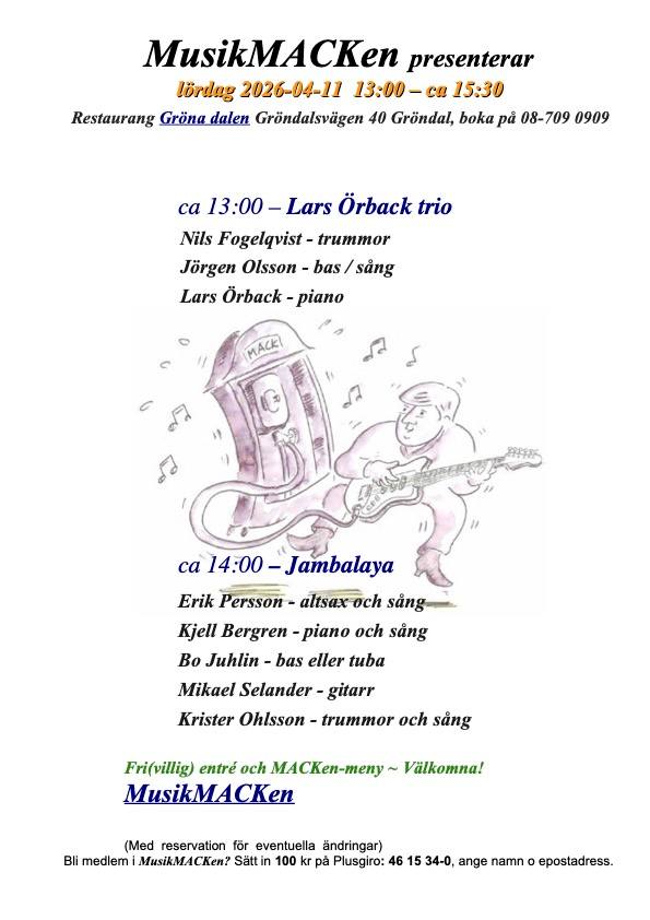 Lars Örback TrioJambalaya https://www.facebook.com/events/2492724904511636 |