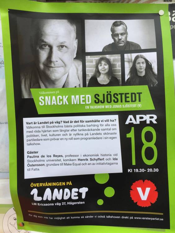 De andra gästerna i ”Snack med Sjöstedt” är Paulina de los Reyes, professor i ekonomisk historia vid Stockholms Universitet, som bland annat skrivit om Husbykravallerna och har mycket att säga om utvecklingen i utsatta förorter och vad som händer i Sverige efter terrordådet. Och Ida Östensson, en av initiativtagarna till Fatta och grundare till Make Equal, som bland annat kommer att prata feminism, machokultur och näthat med Jonas Sjöstedt.