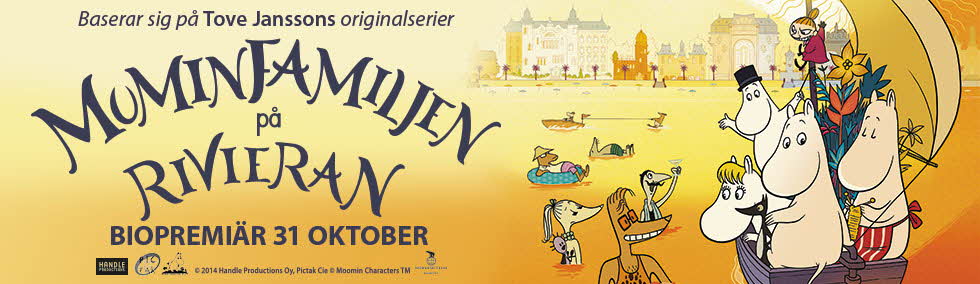 | Xavier Picard, Finland 2013, 80 min, barntillåten. På jakt efter nya äventyr seglar Mumintrollen mot den franska Rivieran. Efter en resa fylld av hotfulla stormar och faror på öde öar blir Snorkfröken förblindad av uppmärksamheten hon får av en playboy på Rivieran. Det här gör Mumintrollet riktigt svartsjuk. När Muminpappan dessutom blir vän med en adelsman och tar namnet ”de Mumin” drar sig Muminmamman tillbaka till lugnet i båten. För första gången är den starka sammanhållningen i Muminfamiljen hotad. 7/12 |